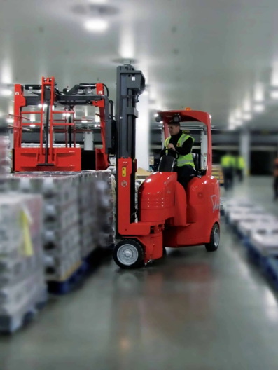 ثبات بأربع عجلات للعمل بكفاءة في جميع التطبيقات: التكديس، التحميل، والتفريغ