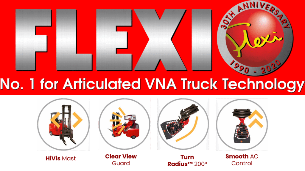 لا تحتاج رافعة Flexi إلى قضبان فولاذية أو أسلاك تحريضية في الممرات الضيقة جداً، ويمكنها التقاط المنصات من أي منطقة استلام داخلية أو خارجية، ونقلها إلى أي موقع VNA.